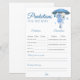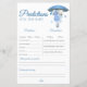 Die Babyduschvorhersage "Blue April Duwers" mit zarten Blume in Blautönen, das charmante Design umfasst einen blühenden Regenschirm und sanfte Regentropfen, die eine spielerische, vom Frühling inspiriert Atmosphäre schaffen. Die Gäste können ihre Vorhersagen für die Geburtsdetails des Babys ausfüllen, wie Geburtsdatum, Gewicht und Name, und zu Ihrer Feier ein unterhaltsames, interaktives Element hinzufügen.