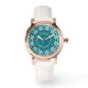 Blue Aqua Mandala Rosette Retro Hippie Armbanduhr