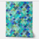 This wallpaper design features a vibrant geometric mosaic pattern in refreshing shades of blue, teal, aqua, and green. The diamond-shaped tiles create a modern, rhythmic texture that adds a sense of calm and playfulness to the space—perfect for nurseries, coastal interiors, or any room needing a pop of cool, ocean-inspired color.