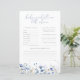 Mit diesem Blue Baby In Bloom Baby Predictions and Advice Game können Sie Ihr Baby mit einer herzlichen Touch in einer blühenden Babydusche unterhalten - eine niedliche und sinnvolle Art, Ihre Gäste einzubeziehen! Diese hübsche, blaue, blumengeschmückte und mit Wildblumen geschmückte Hotelkarte dient den künftigen Eltern als Sake. Die Gäste können ihre besten Wünsche und lustige oder nachdenkliche Ratschläge in diesem ansprechenden Baby-Vorhersagespiel teilen und so bleibende Erinnerungen während Ihrer Babydusche schaffen. Eine perfekte Ergänzung zu Ihrer Sammlung von Babydusche-Spielen, ergänzt sie Ihr Baby wunderbar im Blütenthema.