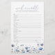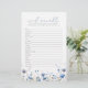 Machen Sie Ihre Babydusche mit dem Blue Baby in Bloom Wildblume Word Scramble Game unterhaltsam. Dieses Wort mit Blumenmotiv enthält kleine Wörter oder Gegenstände zum Entwirren. Es ist perfekt, um einen niedlichen Blumenspass in die Babydusche zu bringen! Die wunderschönen Wildblumen schaffen ein skurriles Babyduschthema, das von der zukünftigen Mutter mit Sicherheit Liebe wird. Es ist ein wunderbares Spiel, das Spaß und Freude macht! Das Blue Baby In Bloom Wildblume Word Scramble eignet sich hervorragend, wenn Sie ein niedliches, einzigartiges Baby-Duschspiel suchen, das zu einem Blumenbaby im Blumenthema passt. Die wunderschönen Wildblumen und das lustige Wortspiel machen Mama's Tag besonders.