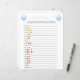 Dieses Baby-Dusche-Emoji-Spiel ist perfekt für eine Babydusche oder ein Babysprinkle. Dieses Spiel verfügt über einen Aquarellblau-Ballon auf der Vorder- und Rückseite. Ihre Gäste können diese gebräuchlichen schwangeren und babybezogenen Phrasen lösen, indem sie die Emoticons entschlüsseln. ANTWORTSCHLÜSSEL: 1. Babydusche 2. Zehn 3. Triplets 4. Mama auf 5. Wasserbruch 6. Hospital Baby Bag 7. Fälligkeitsdatum 8. Baby Flasche 9. Reise ins Krankenhaus 10. Cord abschneiden 11. Bun in the Oven 12. Kein Alkohol 13. Mädchen oder Junge? 14. Schwangerschaftsankündigung 15. Baby Food 16. Herzerbrechen 17. Morgenkrank 18. Butterfly Kisses 19. Baby Moon 20. Schwangere Verlangen. Sie können dieses Design personalisieren, indem Sie auf "Diese Vorlage personalisieren" klicken oder wenn Sie den Schriftart ändern, die Farben ändern oder die Designelemente anders anordnen möchten, klicken Sie auf "Bearbeiten mit dem Entwurfswerkzeug".