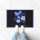 Inspirierte europäische Türmatte in Schwarz mit hellblauen Rahmen und einer Grafik von blauen und blauen Edelweiss-Blume. Personalisieren Sie den benutzerdefinierten Text nach Ihren Bedürfnissen.