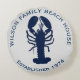 Navy und grau, rundes Hummerkissen mit geschwungenem, individuellem Text für eine Beach Zuhause. Geben Sie den Familiennamen und das festgestellte Jahr an. Eine große Hummer-Silhouette in der Mitte.