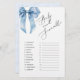 Blue bow Baby Wort Scramble Baby Dusche Spiel ANSWER KEY: 1. BAD ZEIT 2. AUTOSITZ 3. SCHWANKUNG 4. FLASCHE 5. ABBILDUNG 6. STROLLER 7. BLANKET 8. NEWBORN 9. MILCH 10 VERSORGUNG 11. HOHER STUHL 12. SCHNULLER Matching Games sind verfügbar.