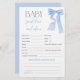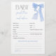 Dieses Design zeichnet sich durch einen zarten blauen Bogen aus und schafft einen zeitlosen und raffinierten Look, der perfekt zum Feiern eines kleinen Jungen geeignet ist. Mit sanften Pastelltönen und anmutigen Details Set es die Bühne für eine elegante und unvergessliche Babydusche.