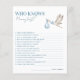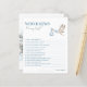 Mit diesem blauen Storchwinters, der Mommy Best Game kennt, macht es Spaß, sich in der Dusche zu amüsieren. Dieses Spiel mit einer süßen Storchsimulation und einem schneebedeckten Winterdorf ist ein perfektes Spiel für eine Babydusche. Die Gäste können die Favoriten von Mama erraten und mehr über sie erfahren, während sie Lachen und Erinnerungen kreieren. Dieses Spiel ist eine charmante Ergänzung zu Ihrem Baby-Duschthema im Winterstorch und koordiniert wunderbar mit Einladungen, Dankeschön-Karten und Zeichen für ein zusammenhängendes Fest.