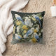 Schöne Vogelliebhaber werfen Kissen mit sechs blauen Budgerigars, die sich in einem blühenden Busch versammeln.