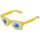 Hellblaue Iris mit verdünntem Pupil wie ein alberner, überraschter Cartoon-Charakter. Große Ausdruckskraft für ein lustiges, albernes Kostüm für Jungs, Kinder oder Erwachsene, wählen gelbe Rahmen oder eine beliebige Farbe, um wie Ihre Lieblings-TV-Animation Persönlichkeit auszusehen.