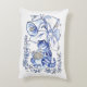 Eine blaue Katze sitzt unter den Hollyhocks, um zu lesen. Das Original wurde von Sue Clancy mit blauer Tinte in einem Füllfederhalter handgefertigt.