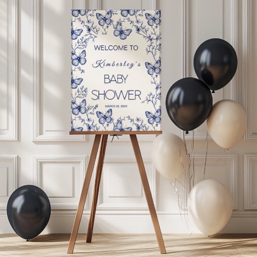 Das Blue Chinoiserie Butterfly Baby Shower Welcome Poster ist eine delikate, zeitlose und charmante Unterkunft und empfängt seine Gäste zu einer raffinierten Feier. Mit handgezeichnet Schmetterlingen und blumigen Ästen in einem blauen Farbstil, der an feines Porzellan erinnert, verleiht dieses Design Ihrem Babyduschen ein Gefühl von ruhiger Eleganz und natürlicher Schönheit.