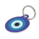 Blauer Metallanhänger mit kühnen bösen Augengrafiken.