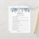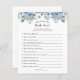 Brautparty-Spielkarte mit Aquarell und blauen Blumen. Eine unterhaltsame Art, mit Duschgästen zu interagieren. Wer kennt die Braut am besten?