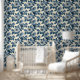Blue Floral Gold Glitzer Japanisch Ukiyo-e Tapete
