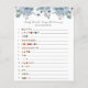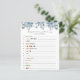 Babyduschkarte mit einer Aquarellkaskade mit blauen Blumen und Grünpflanzen. Eine unterhaltsame Art, mit Duschgästen zu interagieren. {ANTWORTEN: 1. Dschungelbuch, 2. Ein Fisch, zwei Fische, roter Fisch, Blauer Fisch 3. Katze im Hut 4. Fünf kleine Affen. Chicka Chicka Boom Boom 6. Die drei kleinen Schweine 7. Wo die wilden Dinge sind 8. Wenn Sie einer Maus ein Cookie 9. Bewölkt mit einer Chance von Meatballs 10. Hungrige Raupe 11. Charlottes Web 12. Regenbogenfisch 13. Grüne Eier und Schinken 14. Braunbär, Braunbär, was siehst du? }