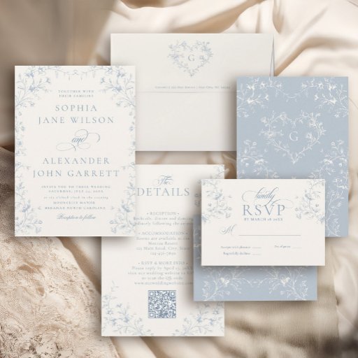 Complete your wedding invitation suite with this Classic French chinoiserie wedding details card. Featuring delicate blue botanical florals, elegant serif typography, and a refined Victorian-inspired layout, this enclosure card provides guests with beautifully organized reception and RSVP information.