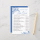 Shoe Game für Hochzeit oder Paare Dusche, personalisiert mit dem Namen der Braut und Bräutigam. Blütenblaues Blumendesign mit Aquarellblüten, Blattwerk und eleganter Kalligraphie. Die Blume ist in einem dunklen Blau gehalten. Das Design hat 20 Fragen, die Sie gerne bearbeiten können.