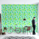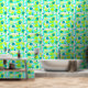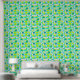 Fun, floral abstract pattern in aqua blue and lime green colors.