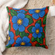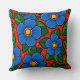 Blue Flowers and Green Leaves on a Red Background Kissen