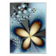 Schönes Blumendesign, blau-goldene Blume und Retro-Wirbel. Passen Sie das Bild mit Ihrem eigenen Text an, verkleinern Sie es. Niedliche mädchenhafte künstlerische einzigartige originelle abstrakte moderne Natur Muster Fraktal feine Kunst.