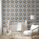 Blue Gold & White Talavera Azulejo Look Tile Tapete