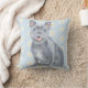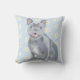 Dieses Kissen mit einem niedlichen, grauen französischen Bulldog auf hellblauem Hintergrund mit weißen Daisies.