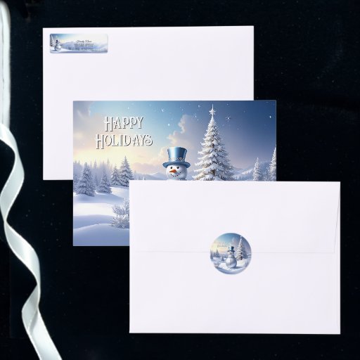 Beautiful Blue Hat Snowman Christmas Tree Holiday Apron