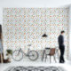 Adorable Schale und Knüppel Tapete für Ihr Baby Junge Kinderzimmer mit einem blauen, sonnigen Motivbild mit hübschen kleinen Hölzern mit vierblättrigen Kleeblatten, blauen Herzen, Karotten und gelben Gängen. Dekorieren Sie Ihr blaues Kinderzimmer mit der hellen Themenschale und der Tapete mit niedlichen kleinen Hasen und blauen Herzen und blass blauen Federn.