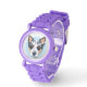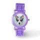 Uhr, Kinderuhr aus Edelstahluhr mit lila Lederarmband
