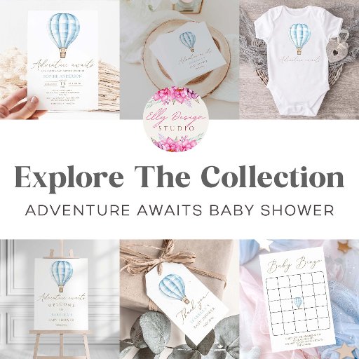 Adventure Awaits Blue Hot Air Balloon Baby ShowerDesignt von Elen Rutland