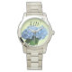 Blue Hydrangea Blume Mit Monogramm Frauen Armbanduhr