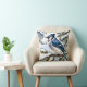 Cozy watercolor-style blue jay perched on a snow-covered pine branch, with soft falling snow and a peaceful winter forest background printed on a throw pillow. A lovely accent for sofas, beds, and cabin chairs, this winter bird cushion adds a calm touch of blue and white to your seasonal decor and makes a thoughtful gift for bird lovers and nature fans.
