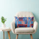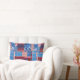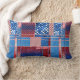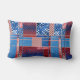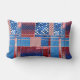 Das Kissen mit modernem, abstraktem Steppmuster oder Patchwork-Muster in Rot und Blau mit Jeans. Das Muster kann auch gedreht oder skaliert werden.