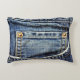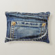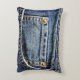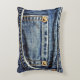 Schicker Dekor für das Wohnzimmer. Dieses Akzentkissen kennzeichnet ein angesagtes Foto einer echten Tasche der blauen Jeans.