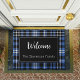 Blue Kariert Welcome Mit Monogramm Name Fußmatte