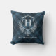 Blue Kariert Winter Monogram Wappen Initial Kissen