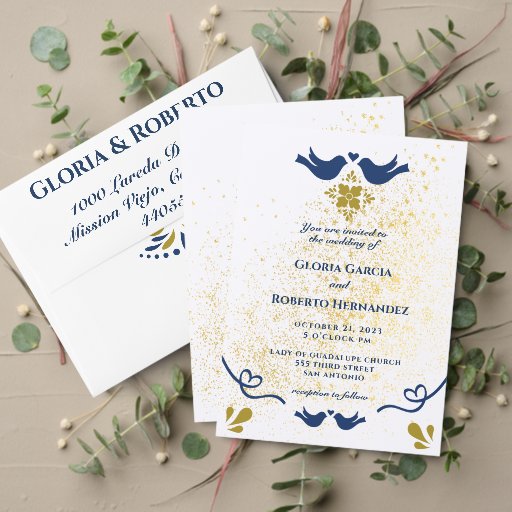 Blue And Golden Love Birds Mexican WeddingDesignt von María Bulman