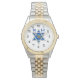 Sowohl männliche als auch weibliche Schriftsteller auf der ganzen Welt haben dieses wunderbare Uhrendesign mit "Thumbs Up" ausgezeichnet! Das weiße Gesicht, die klare Verkleidung und das zweifarbige Band sind ein trendiger Look, der durch den blauen Lapis lazuli, den auf das Gesicht zentrierten Magen David, die schwarzen Zeichen der numerischen Stunde, die das hebräische Aussehen nachahmen, und die benutzerdefinierten Textfelder für die Initialen des Trägers noch einzigartiger wird.