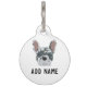 Wenn Ihr geliebter französischer Bulldogge gerne wandert, stellen Sie sicher, dass er einen dieser Hund-ID-Tags hat, falls er sich verirrt. Dieses Hundetag für Franzosen zeigt eine niedliche Abbildung einer blauen, französischen Bulldoggesicht mit Platz, um den Hundenamen auf der Vorderseite und Kontaktdaten auf der Rückseite hinzuzufügen. Textfarbe und Schriftart können geändert werden. Blue merle franz. Bulldog ID tag ist in verschiedenen Größen erhältlich.