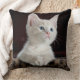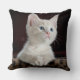 Ein zauberhaftes, weißes Kätzchen mit leuchtend blauen Augen, auf diesem wunderschönen, quadratischen Kissen. Klicken Sie auf Anpassen, um Text hinzuzufügen oder die Hintergrundfarbe auf der Rückseite zu ändern, wenn Sie möchten.