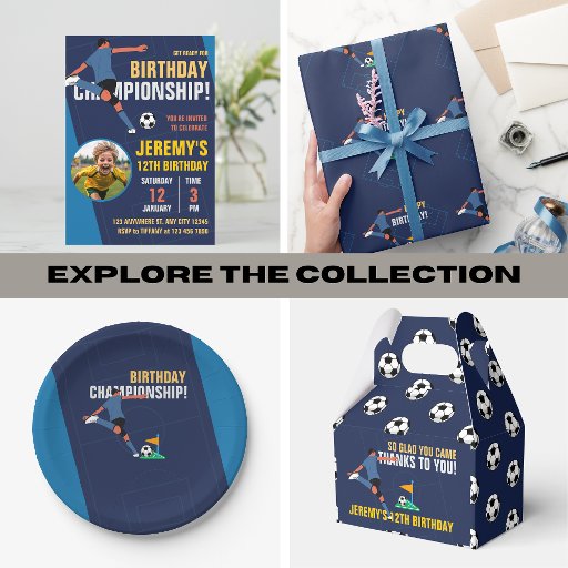Blue Modern Soccer Happy Birthday Party Geschenkpapier