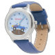 Kinderuhr aus Edelstahl mit blauem Lederarmband