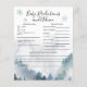 Rustikales Winter Wonderland Thema Baby Dusche Babyvorhersagen und Ratgeber Karte mit der Abbildung eines blauen Berges mit Schneeflocken. Die Texte sind bearbeitbar. Perfektes Spiel während der Dusche zu spielen und wird definitiv ein toller Sake sein! Die Karte frage den Gästen vorherzusagen, wie das Baby aussehen würde.