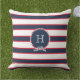 Blaue Navy White Nautical Monogram Modern Stripes Outdoor Pillow