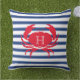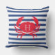 Blue Navy White Crab Nautical Modern Strips O Kissen