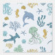 Niedliche Meerestiere Thema Tapete für ein Jungenzimmer oder Kinderzimmer Raum mit der Darstellung der Meereslebewesen in blau.