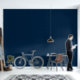 Rustikale Blockhütte in Blau und Schwarz Buffalo Kariert in einem 2,5 cm breiten Muster.