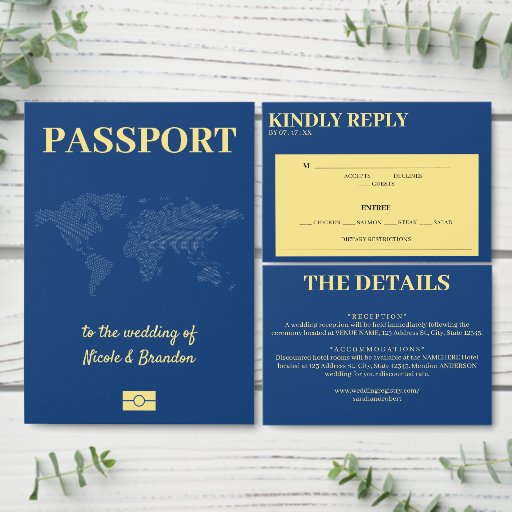 Blue Passport Jamaica Hochzeit in Urlaubsort All In One Einladung