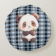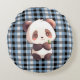 Blue Plaid Panda Throw Pillow Rundes Kissen