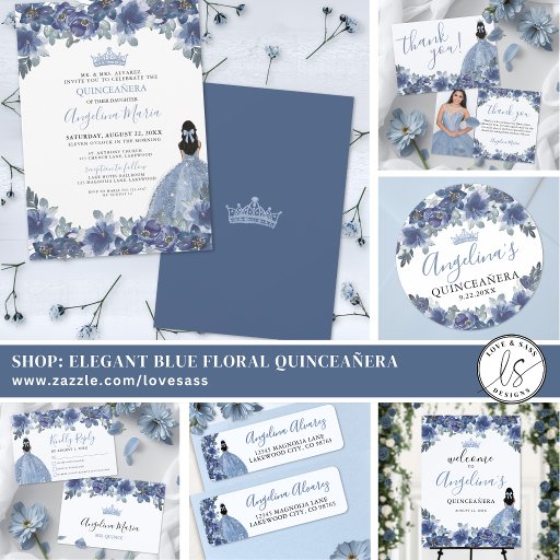 Elegant Blue Floral Quinceañera InvitationsDesignt von Jo P.
